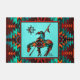 This is a Unique "One of a Kind" End Of The Trail Doormat! It Features a Native American End Of The Trail Indian and Horse on a Turquoise Background...Surrounded by a Border in Turquoise, Orange & Black!