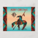 Personalize this "One of a Kind" End Of The Trail Christmas Postcard! It Features a Native American End Of The Trail Indian and Horse on a Turquoise and Orange Sunset Background...Surrounded by a Turquoise, Orange and Black Border!