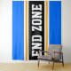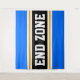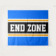 This sporty, athletic design features bold END ZONE text inside a highlighted wide black stripe with double white and yellow racing stripes against bright blue background stripes. The text in this design can be personalized.
