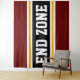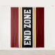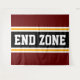 This sporty, athletic design features bold END ZONE text inside a highlighted wide black stripe with double white and yellow racing stripes against deep red outer stripes. The text in this design can be personalized.