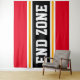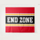 This sporty, athletic design features bold END ZONE text inside a highlighted wide black stripe with double white and yellow racing stripes against bright red outer stripes. The text in this design can be personalized.