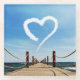 A wooden bridge - an endless way to the ocean with a heart in the sky, made of clouds.