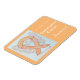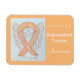 Endometrial Cancer uses a peach ribbon to support awareness for its cause. The custom magnet features a peach awareness ribbon guardian angel art magnet with the message "Support Endometrial Cancer Awareness". The peach awareness angel ribbon art can be customized with personalized messages to make great cause merchandize magnets for fundraisers, awareness gifts, or other special cause events or occasions.