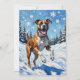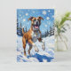 Energetic Boxer Dog Leaping in Winter Snow Fun Holiday Card
