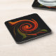This set of fine art cork coasters features a circular whirlpool pattern in brilliant colours of red, orange, green, yellow, brown and black. The abstract design is an impressionistic view of the swirling whirlpool energy of creation.