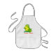 Un tablier blanc des enfants avec une grenouille et un "gribbet mignons et verts, gribbet…" dans le lettrage rouge.