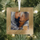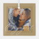 Engaged Modern Script Couples Photo & Monogram Glass Ornament
