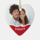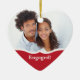 This modern ornament is a great keepsake of a couple's engagement day. It features a curvy border with the word "Engaged!" and a picture of the happy couple on the front. The back has a solid colours with the names and the date of engagement. This eye-catching ornament makes a great custom gift.