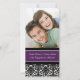 Engagement announcement Photo Card in elegant eggplant dark purple, black and white classic floral damask pattern, customizable with your names, the perfect way to announce your engagement to friends and family. Pattern available in a wide range of matching wedding products.