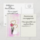 This engagement announcement has a stylized bride in a wedding gown and groom in a tuxedo with pink flower adorned, entwined gold hearts in background.and lace look trim. Pink themed. You can alter the text to personalize. On the front is a Bible verse from the Song of Solomon that says "I haa. On the back is your message and your names.
