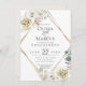 ENGAGEMENT ANNOUNCEMENT | Watercolor Ivory Floral Wedding with geometric shapes with shades of blush and ivory hues - a gold geometric multi faceted terrarium style frame adorned with greenery and shades of blush and alabaster floral bouquets. Reverse is a complimentary coordinated colour. Customize text, font style, colour and size. Original artwork created for the BarefootBride™ by © WhimsicalArtwork™ - This is part of a complete Wedding Stationery Suite with matching wedding, baby shower and other event stationery.