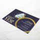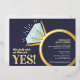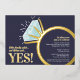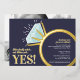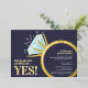 Invite your friends and family to a engagement party or engagement dinner celebration with these dark blue, gold foil, aqua and white, graphic diamond engagement ring invitations. Personalized with your own celebration words, date, venue and a photo of your couple on the back. Other matching items available. Original graphic art and design by www.mylittleeden.com on zazzle.