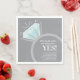 Blue grey modern fun fact and diamond engagement ring napkins. She said yes engagement ring party napkins personalize with your own name and couples fun facts. Other matching items also available. © Original graphic ring design by www.sarahtrett.com for www.mylittleeden.com and www.mylittleedenweddings.com on zazzle.