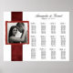 This southern country winter themed wedding table seating chart features an old fashioned looking vintage background with a distressed textured look. A faux burlap red ribbon is on one side with a weathered paper looking frame around a place to put your own engagement photograph or wedding photo. Customize text to use however you wish.