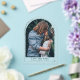 Classic elegant wedding save the date featuring your photo with simple "SAVE THE DATE" at bottom with floral botanical arch border. Personalize with your names and wedding date.
