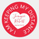 Social distance engagement or wedding event red colour-coded sticker. Help your guests feel safe and let other guests keep their distance from your more vulnerable and worried guests. Code red health warning sticker reads I AM KEEPING MY DISTANCE plus you can personalize with your own couples name event or wedding date. Matching posters and instructions are also available. Designed by www.mylittleedenweddings.com