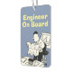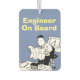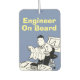 Car Air Freshener. An engineer is in his office studying plans. Blue background.