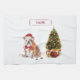 An English bulldog, next to a decorated Christmas tree, is sporting a red bow tie and Santa hat. Send this funny holiday Christmas gift as you wish a New Year worth barking about!