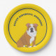Throw a doggone good party with these personalized paper plates. They're perfect for birthday parties or other celebrations honouring dog lovers of all ages. They feature a realistic style illustration of an English bulldog in light brown and white set against a bright yellow background. Navy blue lettering spells out your custom message.