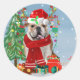 English Bulldog in Snow with Christmas Gifts Classic Round Sticker