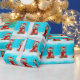 English Bulldog enjoying in snow with christmas gifts wearing santa claus hat and with christmas lights is a perfect gift idea for someone who love this dog breed