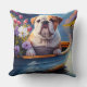 English Bulldog on a Paddle: A Scenic Adventure Throw Pillow
