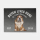 English Bulldog Personalized Dog lover welcome doormat. This welcome mat can be personalized with your dog’s name, the slogan can also be changed or you could use a picture of your own dog (make sure it's transparent). Text reads: Butch lives here…. All treats welcome
