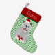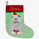 A precious pet deserves a personalized Christmas stocking! A green polka dot background and red trim adds festive colours to show off an adorable grey english bulldog with a cute little Santa hat. Easy to personalize! Original vector art by Night Owl's Menagerie, 2014.