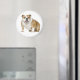 This fun canine magnet features a image of beautiful brown and white English Bulldog highlighted against a crisp white background.