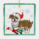 English Bulldog with Xmas Lights And Santa Toy Ceramic Ornament