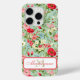 This trendy, monogrammed iphone case has a text template for you to put your name and initial on the bottom. There is a fresh, colourful pattern of pink, white, blue and red flowers and moss green botanicals against a pale blue green background. If you are looking for another product with this floral pattern and don't see it, please message me here and I would be happy to create it for you.