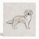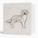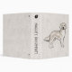 Destei's original cartoon illustration of an English cream colour Golden Retriever breed dog. The background colour is light beige with a decorative texture. The texture can be removed and the background colour can be changed to any other colour, if so wished. There is also a personalizable text area on the spine together with a black paw print silhouette. This design is ideal for any dog owner to store their pet's vet bills and other important documents, for example.