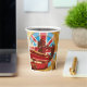 A n English double decker bus with the union jack. This design looks really effective on these Paper Cups