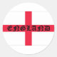 This image is of the St George's Cross. It has on it the Word England in Old English style text, using capital letters.