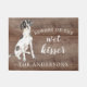 Funny beware of the wet kisser" English Pointer Dog door mat set on a rustic faux background. Visit our shop to view a large assortment of dog breads