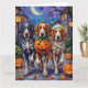 Adorable English Setters dressed in playful Halloween costumes carry pumpkin buckets while trick-or-treating under the moonlit sky. This festive design highlights the breed’s silky feathered coat, gentle eyes, and friendly personality, perfectly capturing the spooky yet fun atmosphere of Halloween night. A beautiful celebration for dog lovers and Halloween fans alike.