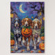 Adorable English Setters dressed in playful Halloween costumes carry pumpkin buckets while trick-or-treating under the moonlit sky. This festive design highlights the breed’s silky feathered coat, gentle eyes, and friendly personality, perfectly capturing the spooky yet fun atmosphere of Halloween night. A beautiful celebration for dog lovers and Halloween fans alike.