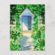 A beautiful watercolour painting of an English Cottage Garden. If you love garden art and the English gardening style, then you will love this sunny picture of a summer's garden in England on this elegant garden art card by English artist, Paul Stickland. A beautiful postcard for a gardening friend or gardener. An open cottage door in England surrounded by flowers and plants, with a garden path leading up to it. An open book lies on the path, surrounded by cottage garden plants. A fine art floral print for a garden lover, a gardener or garden themed summer room.
