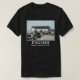 Plain black T-shirt with a picture of the border crossing at Laredo, exiting the United States. Intended to motivate transplants to America to either learn our language or leave.