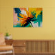 Strong, gestural brushstrokes and splashes of paint give the piece a raw, expressive character. The contrast between light and dark elements creates tension and depth, while the vibrant palette brings warmth, optimism, and creative intensity. Though inspired by floral forms, the artwork remains fully abstract, allowing the viewer to interpret it as a symbol of growth, freedom, energy, or transformation.