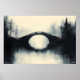Enigmatic Bridge Amidst Foggy Reflections in B&W Poster