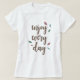 Feather design "enjoy your day" phrase decorated calligraphy letters on woman t-shirt.