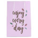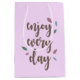Enjoy every day, calligrpahy motivational phrase, boho feather falling from the sky.