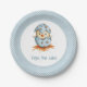 Cute paper plates with a chick hatching from a blue egg. Perfect to complement your baby shower celebration. Illustrated and designed by Patricia Alvarez.