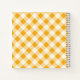 Adorable little gnome in a yellow and black buffalo plaid print has gathered some sunflowers. Yellow Gingham background. Text reads "Enjoy the Little Things".