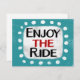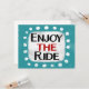 "Enjoy The Ride" is a cute inspirational or motivational quote with a white accent shape surrounded by white textured whimsical dots.