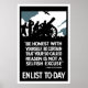 This vintage World War One poster features soldiers operating a artillery gun. It reads, "Be Honest With Yourself. Be Certain That Your So-Called Reason Is Not A Selfish Excuse. Lord Kitchener. Enlist To-Day". Celebrate American and WW1 History with this digitally restored vintage war poster from The War Is Hell Store.