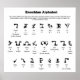 The Enochian alphabet with letter forms, letter names, English equivalents, and pronunciation of the letter names (pronunciation in quotes if different than English). The Enochian letters in this chart are read from right to left, as written in John Dee's diary.