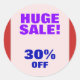 "ÉNORME VENTE !" Sticker rond "30 % OFF"