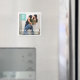 Moderne, mais avec une touche rustique, une photo du beau couple remplit le cadre, et une bannière aqua turquoise branchée tient le mois, le jour et l'année de la date mariage. Un aimant de conservation parfait pour faire connaître aux clients la date du fiançailles et du mariage.
